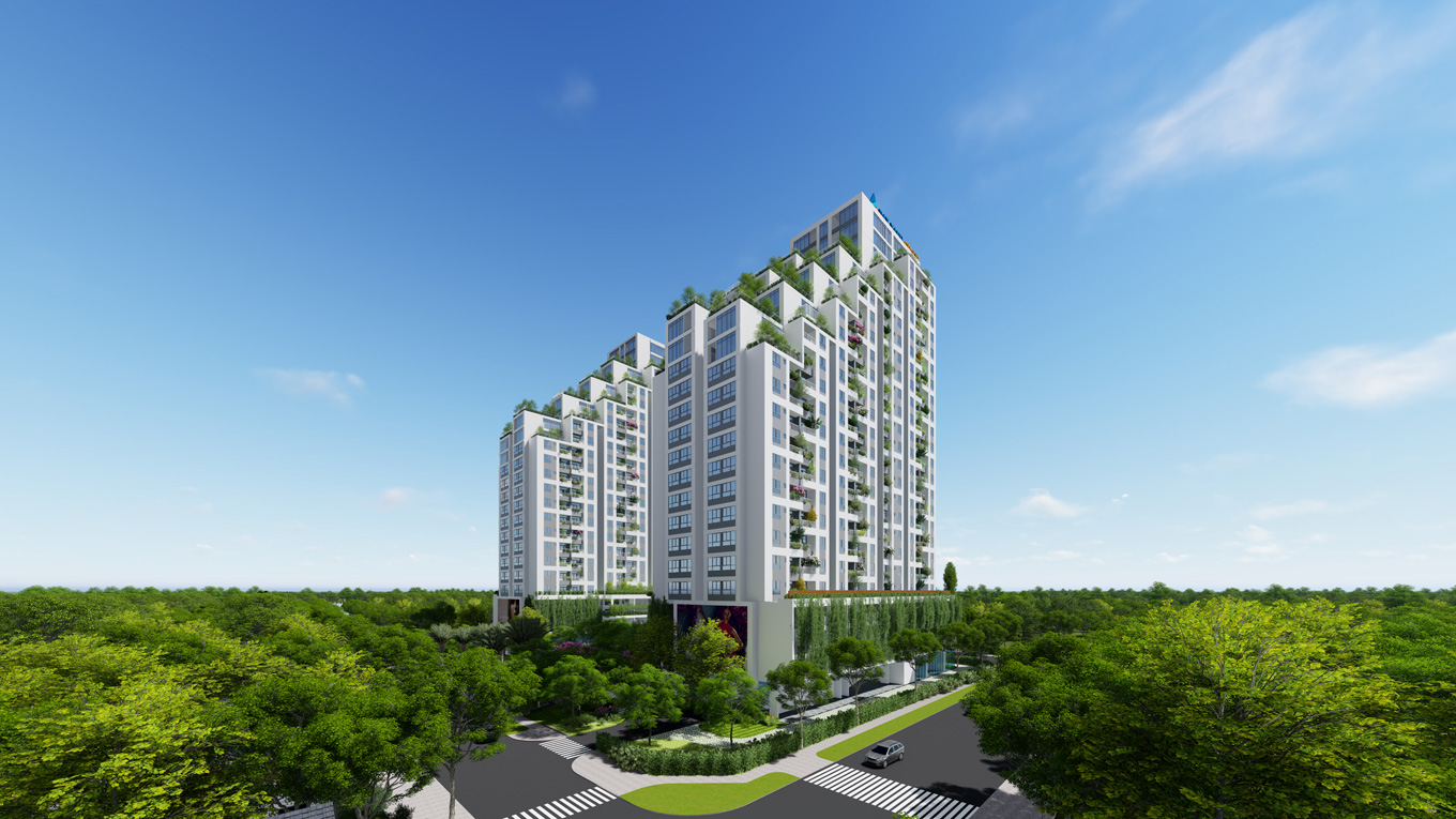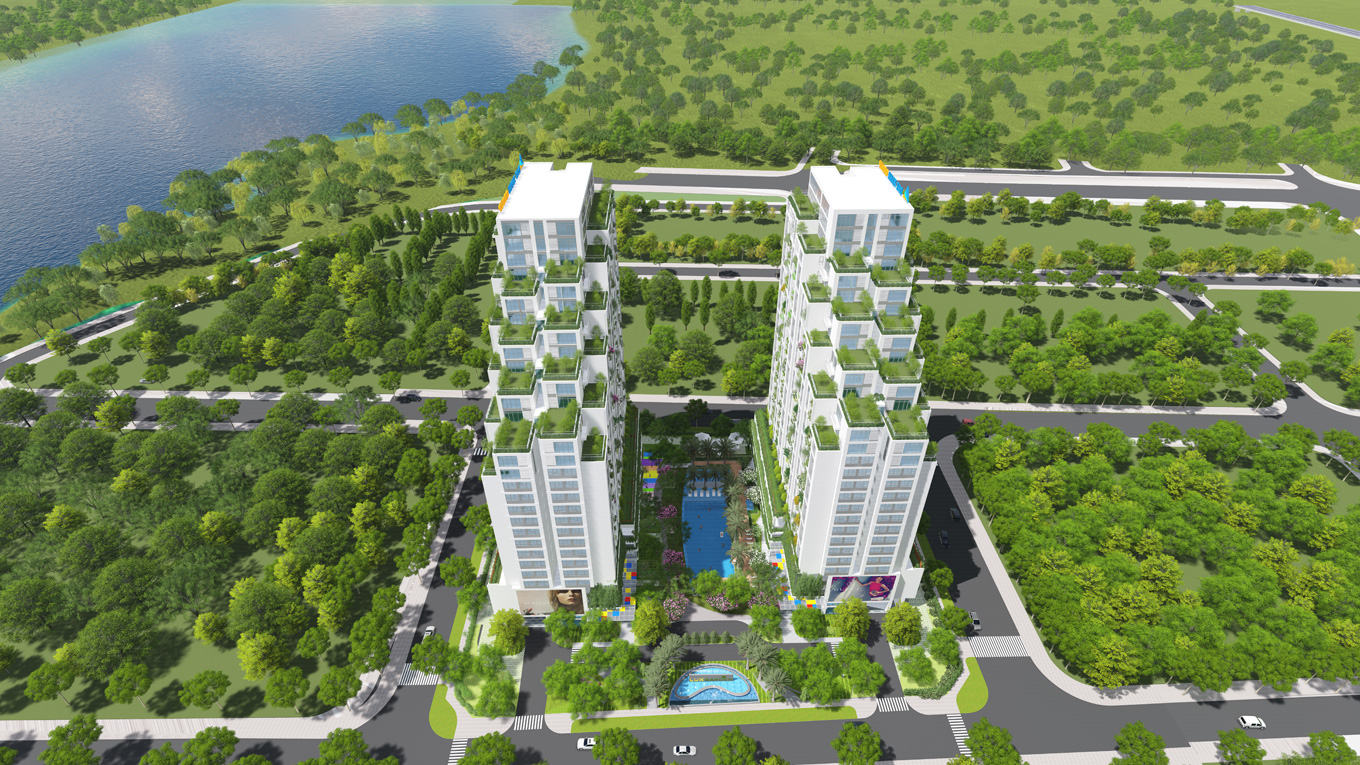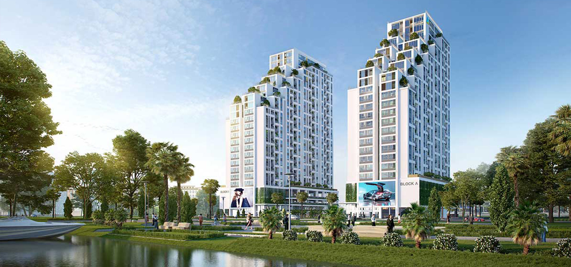2 tòa tháp A&B với 500 sản phẩm gồm: căn hộ 2-3 PN, căn hộ duplex