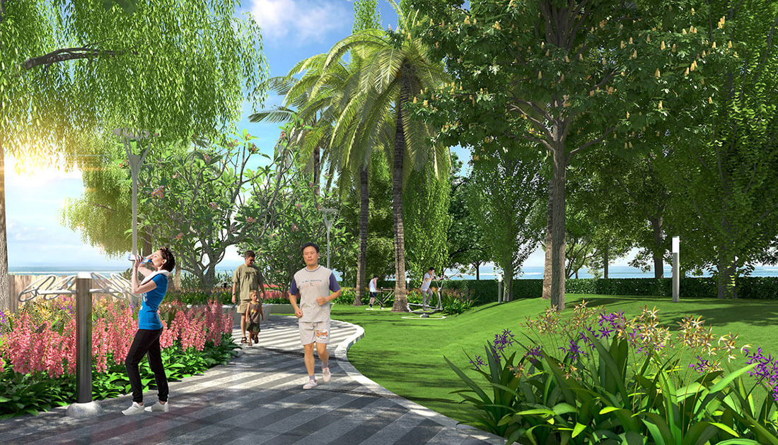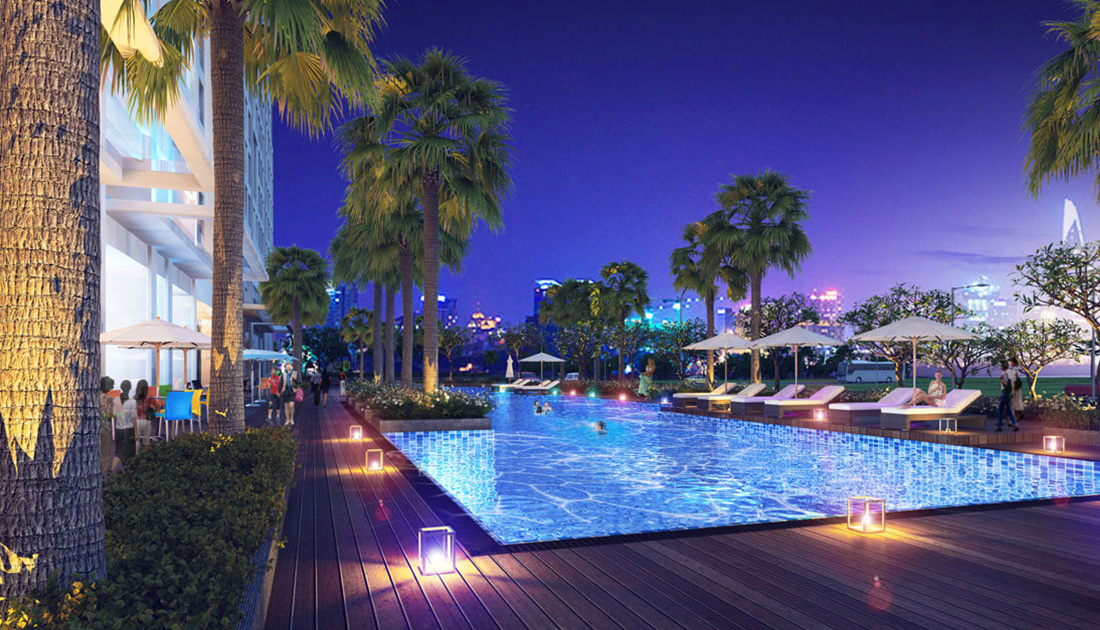 35 tiện ích nội khu đẳng cấp như: công viên rộng 1 ha, bến du thuyền, hồ bơi, khu BBQ...
