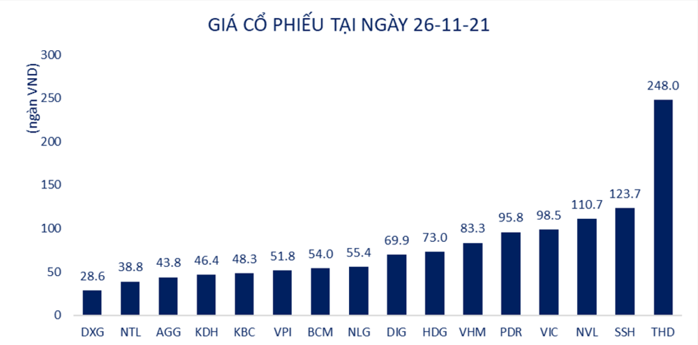 Biểu đồ 1. Giá một số cổ phiếu Bất động sản tại ngày 02/12/2021