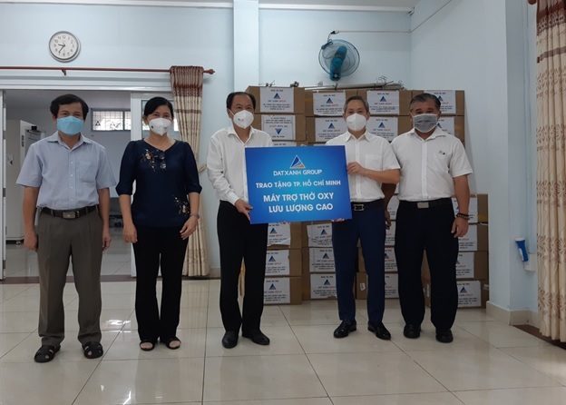 Với sự nhanh chóng và quyết liệt, Tập đoàn Đất Xanh đã ủng hộ 60 tỷ đồng cho công tác phòng chống dịch Covid-19 trên toàn quốc. Trong đó, tính trên địa bàn Thành phố Hồ Chí Minh, Tập đoàn Đất Xanh đã dành tặng 100 máy trợ thở oxy trên kế hoạch tặng gần 300 máy trợ thở oxy lưu lượng cao HFNC và thiết bị y tế cho 6 tỉnh, thành phía Nam, 500 triệu đồng ủng hộ chương trình ATM – Oxy của Hội Doanh nhân trẻ Việt Nam, cung cấp hàng nghìn bữa ăn sáng cho người dân tại khu cách ly, tài trợ nhiều thiết bị y tế cấp thiết như bình oxy, găng tay và khẩu trang y tế chuyên dụng cùng hàng trăm triệu đồng chia sẻ kịp thời cho những hoàn cảnh khó khăn vì dịch Covid – 19.