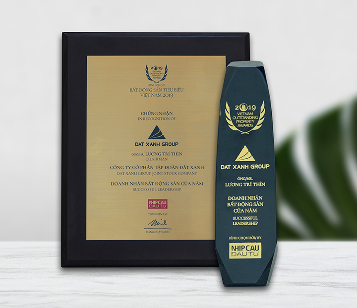 Chủ tịch HĐQT Tập đoàn Đất Xanh được vinh danh “Doanh nhân bất động sản của năm”, Tập đoàn Đất Xanh đồng thời được vinh danh “Nhà phát triển bất động sản tiêu biểu” và “Top 10 Doanh nghiệp bất động sản tư nhân lớn nhất Việt Nam” năm 2019.