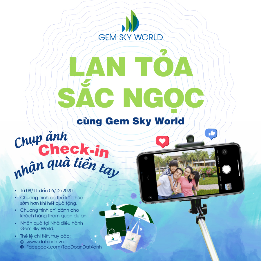 Chương trình “Lan tỏa sắc ngọc cùng Gem Sky World” đặc biệt dành riêng cho Khách hàng (KH) tham quan trải nghiệm thực tế dự án Khu đô thị Thương mại giải trí Gem Sky World - chỉ với những bước rất đơn giản, Khách hàng sẽ có cơ hội nhận được những món quà lưu niệm xinh xắn!