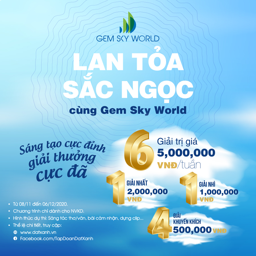 Lan tỏa khí thế và sức nóng của dự án nổi bật nhất Đồng Nai - Khu đô thị thương mại giải trí Gem Sky World, Tập đoàn Đất Xanh tổ chức cuộc thi “Lan tỏa sắc ngọc cùng Gem Sky World” dành cho Nhân viên Kinh doanh (NVKD) với những giải thưởng vô cùng hấp dẫn.