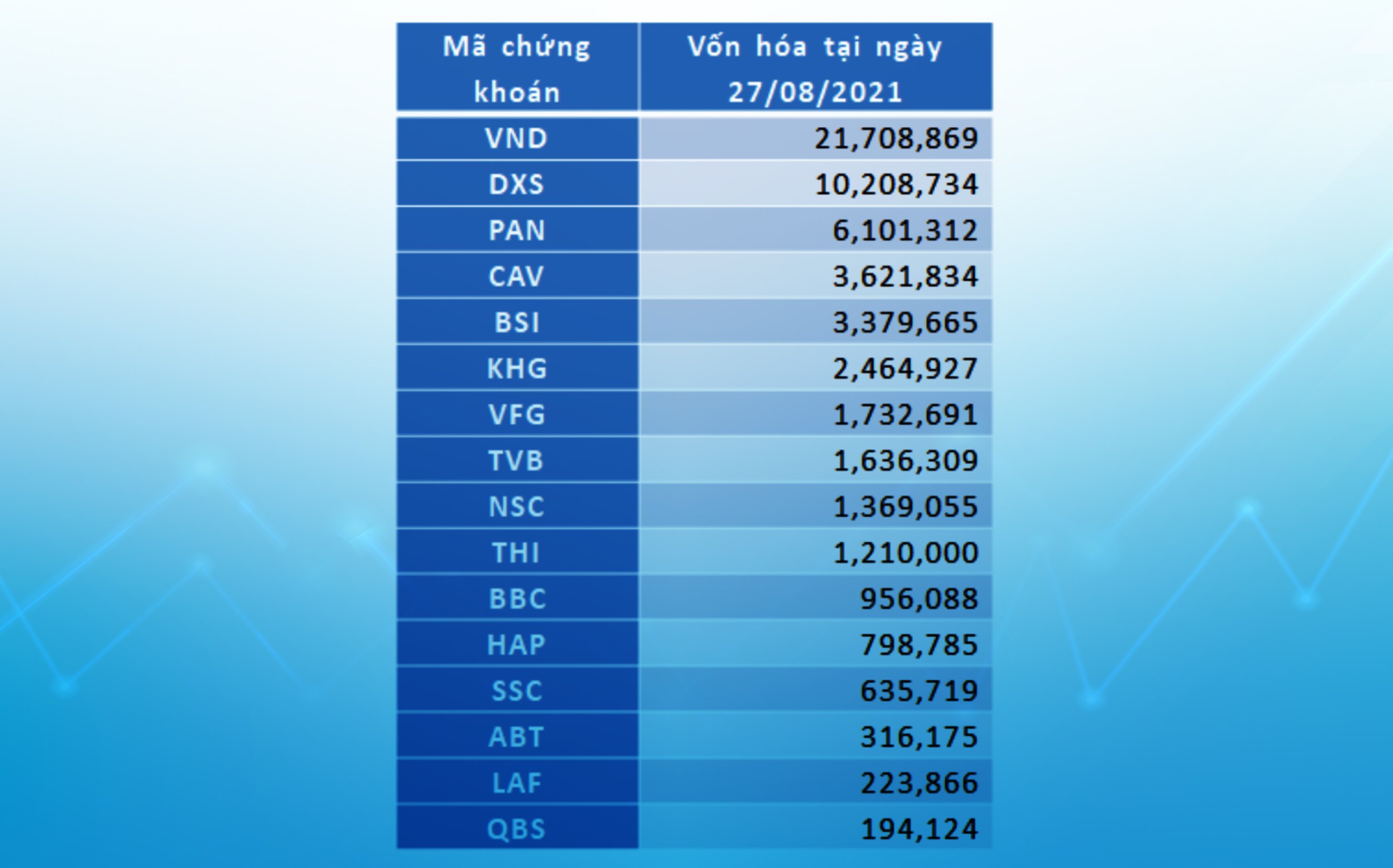 Trong 16 cổ phiếu “tạm trú” trên HNX đã trở lại giao dịch trên HOSE ngày 6/9/2021, chỉ có 2 cổ phiếu có vốn hóa trên 10.000 tỷ đồng là VND và DXS. Với mức vốn hóa này, VND và DXS sẽ nằm trong Top 100 cổ phiếu có vốn hóa lớn nhất trên HOSE – điều kiện quan trọng để hút dòng tiền khối ngoại và các quỹ đầu tư.