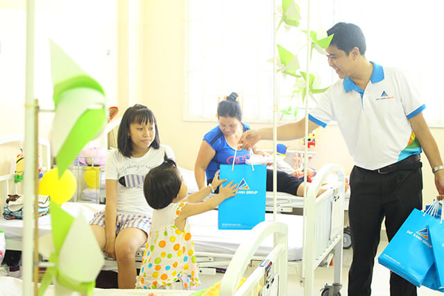 Với mong muốn mang tới sự quan tâm, chăm sóc và chia sẻ cùng bệnh nhi ung thư và góp phần mang lại cho các em sự ấm áp, tình yêu thương, sáng ngày 1/6/2016, Tập đoàn Đất Xanh đã tổ chức chuyến thăm hỏi và tặng quà cho các trẻ em nghèo đang điều trị tại Bệnh viện Ung bướu, Bệnh viện Nhi đồng 2, TP.HCM.