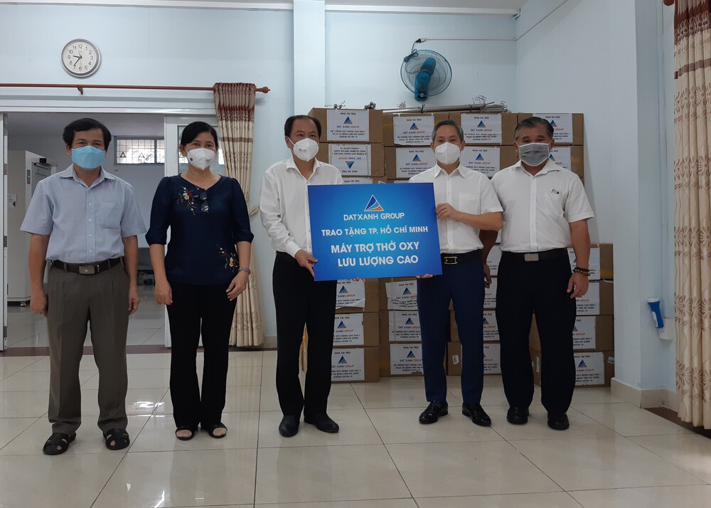 Nhanh chóng và quyết liệt, Tập đoàn Đất Xanh đã triển khai ngay kế hoạch tặng gần 300 máy trợ thở oxy lưu lượng cao HFNC và thiết bị y tế cho 6 tỉnh, thành phía Nam. Sau khi đã trao tặng 50 máy trợ thở cho tỉnh Bình Dương, 20 máy trợ thở cho tỉnh Long An, 2 máy chụp X-quang di động cho tỉnh Đồng Nai, ngày 31/8/2021, Tập đoàn Đất Xanh đã tiếp tục trao tặng 100 máy trợ thở oxy cho Thành phố Hồ Chí Minh và 20 máy trợ thở oxy cho tỉnh Bình Phước.