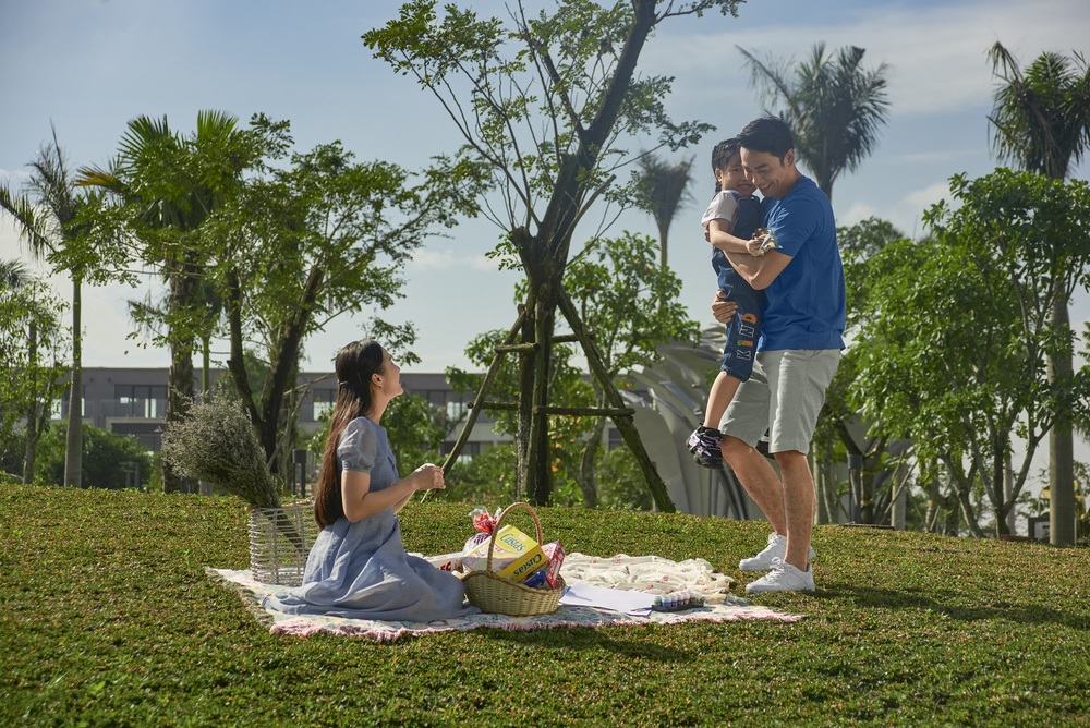 Đồi cỏ ngập tràn sắc xanh tại công viên trung tâm Gem Sky Park, thích hợp để các gia đình tổ chức những buổi picnic mỗi cuối tuần.