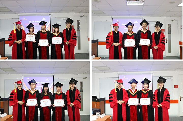 Ngay sau đó là phần trao chứng nhận tốt nghiệp cho các học viên “Nhà quản lý tài năng - mùa 3 năm 2019”. Lần lượt từng học viên được bước lên để đón nhận chứng nhận tốt nghiệp do đại diện Tập đoàn Đất Xanh và Viện quản trị và đào tạo quốc tế FSB thuộc đại học FPT trao.