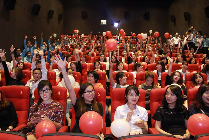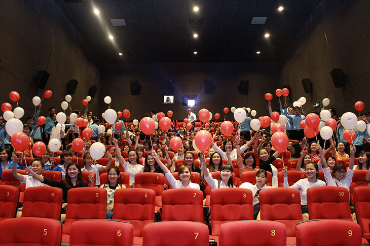Rạp phim tràn ngập bóng bay và phụ nữ
