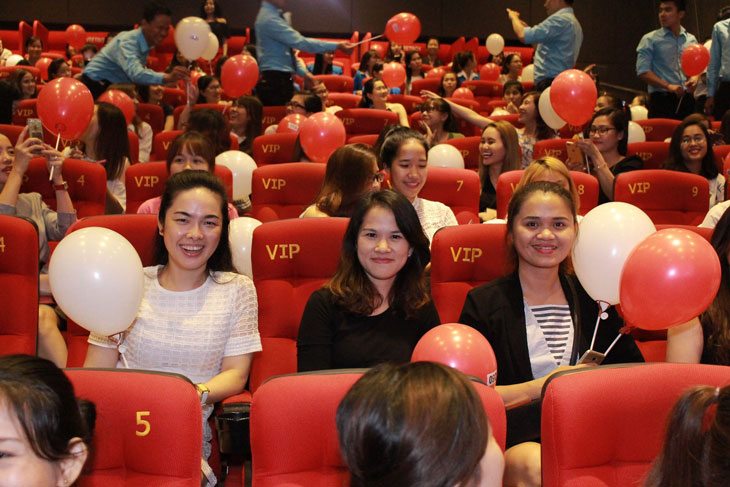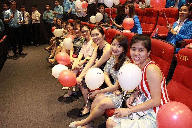 Vui hết mình: Rạp Film tại Trung tâm thương mại đã “thất thủ” khi hàng trăm chị em phụ nữ “đổ bộ” với bong bóng trên tay và những shoot hình ấn tượng bên khu Photo shoot của chương trình.