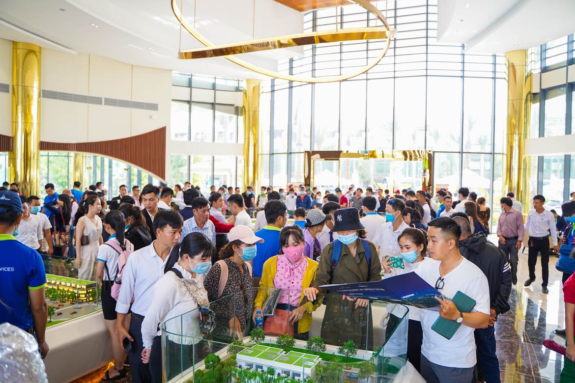 Đông đảo khách đến tìm hiểu dự án Gem Sky World tại nhà điều hành sáng ngày 4.4