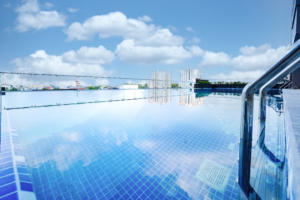 Hồ bơi vô cực được đặt tại tầng 4 của tòa nhà cùng với các tiện ích cao cấp khác.
