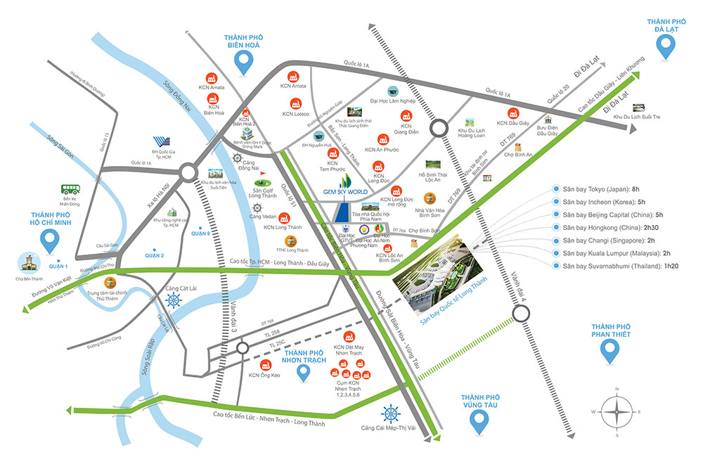Ngoài ưu thế về vị trí, nhà phố thương mại Gem Sky World còn nằm ở xung quanh khu vực dân sinh hiện hữu như: Chợ Long Thành, Trung tâm Hành chính huyện Long Thành, khu dân cư KCN Long Đức…