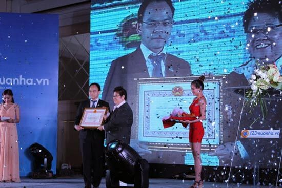 Cũng tại buổi lễ, Tiến sĩ Đỗ Thị Loan – Phó Chủ tịch Hiệp hội bất động sản Tp.HCM đã trao bằng khen cho Đất Xanh về sự đóng góp sáng tạo để phát triển ngành Bất Động Sản khi đưa ra website giao dịch trực tuyến tiện lợi, nhanh chóng. Đồng thời, Bà Loan cũng nhấn mạnh: “Tôi rất tin tưởng đây sẽ là hướng đi mới thành công và trở thành xu hướng cho nghành BĐS thời gian tới. Mong rằng Đất Xanh sẽ triển khai vận hành và phát triển thành công website “123muanha.vn” để trở thành mô hình kinh doanh cho các doanh nghiệp bất động sản khác làm mẫu.”