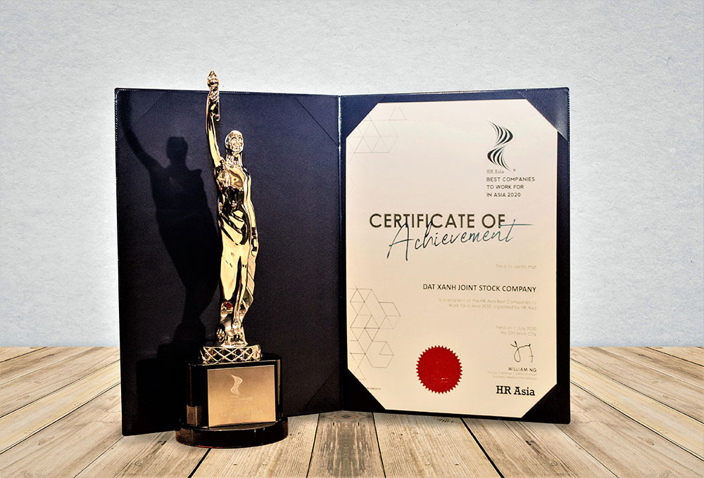 Tối ngày 01/07/2020, tại TP.HCM, Tập đoàn Đất Xanh đã được HR Asia vinh danh là một trong những “Doanh nghiệp có môi trường làm việc tốt nhất châu Á năm 2020” tại Việt Nam.