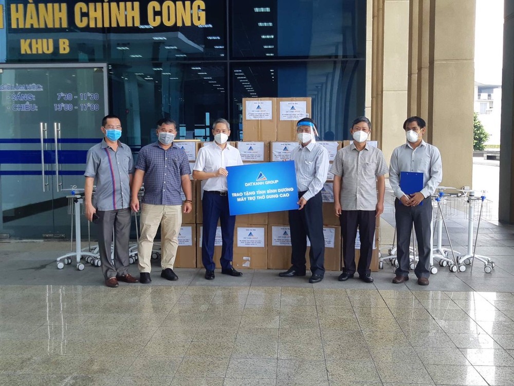 Ngày 17/8, Tổng Giám Đốc Tập đoàn Đất Xanh, ông Bùi Ngọc Đức trao 50 máy trợ thở lưu lượng cao cho ông Nguyễn Văn Lộc, Chủ tịch Uý ban MTTQ tỉnh Bình Dương.