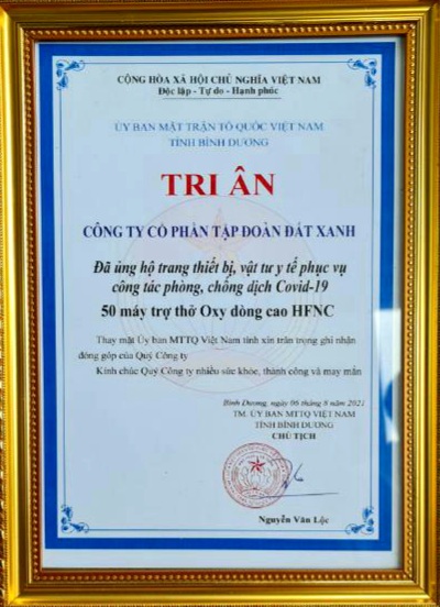 Biến thể Delta đã khiến công tác phòng chống dịch của nhiều địa phương trở nên khó khăn, khi số lượng F0 tăng vọt, diễn tiến bệnh chuyển biến nhanh. Hệ thống y tế tại những địa phương ghi nhận ca nhiễm cao, trong đó có Bình Dương đang nỗ lực hết mình để trả lại vùng xanh cho cả cộng đồng. Thấu hiểu được sự nỗ lực này, Tập đoàn Đất Xanh đã lên kế hoạch mua và kịp thời trao tặng 50 máy trợ thở oxy dòng cao HFNC đến đại diện chính quyền tỉnh. Sự kiện này nằm trong chuỗi hoạt động trao tặng 260 máy thở và vật tư y tế cho 6 tỉnh thành phía Nam.