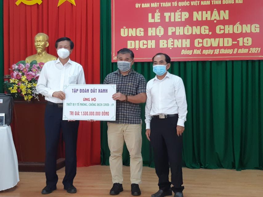 Với mục tiêu sớm đẩy lùi dịch bệnh và tiếp thêm sức mạnh cho tỉnh Đồng Nai trong cuộc chiến phòng chống dịch Covid-19, sáng nay 18/8/2021, Tập đoàn Đất Xanh đã tiến hành trao tặng 2 máy chụp X-quang di động, trị giá hơn 1,5 tỷ đồng cho UBND tỉnh Đồng Nai. Sự kiện này nằm trong chuỗi hoạt động Tập đoàn Đất Xanh trao tặng gần 300 máy trợ thở và thiết bị y tế cho 6 tỉnh thành phía Nam.