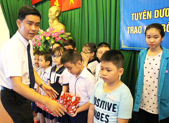 Tham dự buổi trao tặng có sự tham gia của đông đảo học sinh giỏi, bé khỏe bé ngoan cùng phụ huynh và đại diện các cơ quan chính quyền và đoàn thể: UBND P.24 – Bình Thạnh, Hội Phụ Nữ, Hội Khuyến học, Hội Cựu chiến binh Quận Bình Thạnh và đại diện Tập Đoàn Đất Xanh.