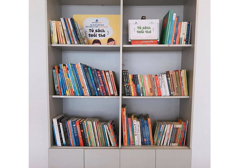 Tủ sách Tuổi Thơ với hơn 200 đầu sách dành cho các em thiếu nhi bao gồm nhiều lĩnh vực tại khu căn hộ Lux Garden và Opal Garden.