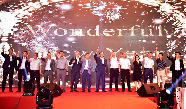 Ban Tổng giám đốc Tập đoàn Đất Xanh cùng nâng ly chúc mừng, hướng đến những mục tiêu và thắng lợi trong năm mới.