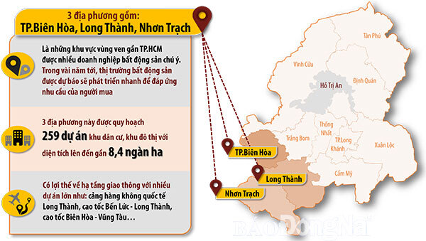 Ba khu vực bất động sản được chú ý nhất ở Đồng Nai. Nguồn: Báo Đồng Nai.