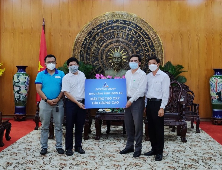 Nằm trong chuỗi hoạt động Tập đoàn Đất Xanh trao tặng gần 300 máy trợ thở và thiết bị y tế cho 6 tỉnh thành phía Nam, ngày 20/8/2021, Tập đoàn Đất Xanh đã tiếp tục trao tặng 20 máy trợ thở oxy lưu lượng cao HFNC cho UBND tỉnh Long An.
