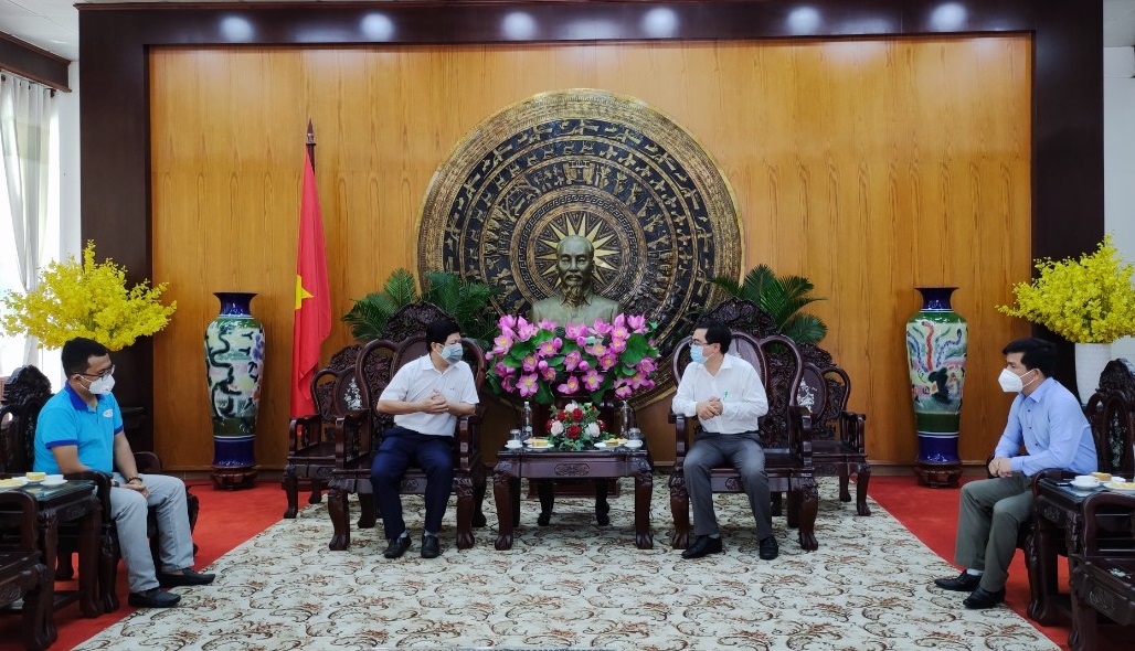 Đại diện Tập đoàn Đất Xanh thăm hỏi và trao đổi về tình hình dịch bệnh tại tỉnh Long An với đại diện UBND tỉnh Long An.